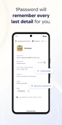 Zaidi ya usimamizi wa nywila, 1Password inaimarisha usalama wako wa kidijitali. Unda na ujaze misimbo ya uthibitisho wa hatua mbili (2FA) moja kwa moja, hivyo kuondoa hitaji la programu tofauti za uthibitisho. Gundua "passkeys" – njia mpya, salama zaidi ya kuingia bila kutumia nywila, ambazo unaweza kuzihifadhi na kuzitumia hata kufungua 1Password yenyewe. Hifadhi kwa usalama taarifa za kadi za benki, noti za siri, rekodi za matibabu, na hati zingine muhimu, zote zikiwa zimehifadhiwa na kupatikana kwa urahisi kwenye kifaa chochote. Kipengele cha Watchtower hukuarifu mara moja iwapo akaunti zako ziko hatarini kutokana na uvujaji wa data, na unaweza kufungua programu kwa kutumia alama za kibayometriki kwa usalama wa haraka na rahisi.