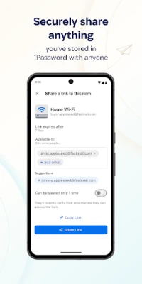 1Password inarahisisha hata kushiriki taarifa nyeti. Shiriki nywila au taarifa zingine za siri kwa usalama na kwa muda na mtu yeyote, hata kama hatumii 1Password. Hii ni muhimu kwa kushiriki maelezo ya Wi-Fi au taarifa za kifedha na marafiki au wafanyakazi bila kutumia njia zisizo salama kama barua pepe. Kwa wale wanaosafiri, Hali ya Kusafiri (Travel Mode) inakupa amani ya akili kwa kuficha kwa muda mafaili yaliyohifadhiwa yenye taarifa nyeti. Faragha yako ni kipaumbele chetu kikuu; 1Password imeundwa kwa usalama usio na kifani, na hatuwezi kuona, kutumia, kushiriki, au kuuza data yako. Jionee mwenyewe jinsi 1Password inavyorahisisha usalama wako kwa kujaribu huduma zake kwa siku 14 bila malipo, kisha chagua mpango unaokufaa.