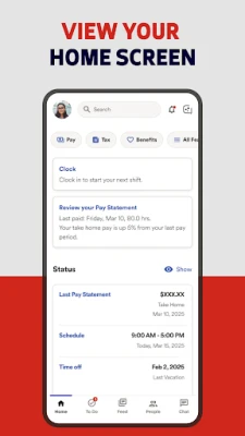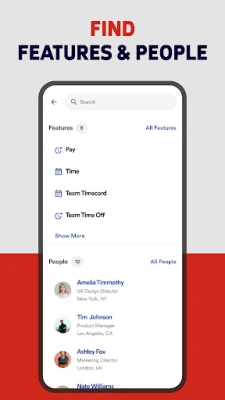 Kwa wafanyakazi, programu ya ADP inatoa uwezo wa kuona taarifa zako za malipo na W2 kwa urahisi, pamoja na kufuatilia na kuomba likizo. Usimamizi wa muda na mahudhurio unarahisishwa kupitia uwezo wa kuingia na kutoka kazini kidijitali, kuunda fomu za nyakati, na kusasisha au kuhariri kadi za muda. Unaweza pia kufuatilia akaunti zako za kadi ya malipo, kupitia taarifa za mpango wa manufaa, na kuwasiliana na wenzako moja kwa moja. Zaidi ya hayo, programu hii inatoa fursa za kipekee kutoka ADP na washirika wengine.