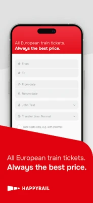 HappyRail ni programu yako muhimu kwa tiketi zote za treni barani Ulaya. Pata bei bora na hakuna ada za kuweka nafasi. Linganisha ofa zote huru, huku tiketi zako zikihifadhiwa moja kwa moja kwenye programu. Fanya safari za treni kuwa rahisi, zenye starehe na furaha tele.