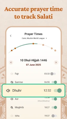 Gundua Qibla kwa urahisi usio na kifani ukitumia dira yetu mahiri, inayokuongoza kuelekea Makkah kutoka pembe yoyote ya dunia. Baada ya uteuzi wa awali, dira hii hufanya kazi hata bila mtandao, na inakuwezesha kuhifadhi maeneo unayotembelea mara kwa mara kama nyumbani, kazini au sehemu unazopenda. Pia, pokea ratiba sahihi za sala zinazobadilika kiotomatiki kulingana na msimamo wako halisi wa kijiografia, au chagua eneo lolote duniani mwenyewe. Salati inatumia njia zote zinazokubalika za hesabu za Kiislamu ili kuhakikisha usahihi usio na shaka. Kengele za Adhana zinazojitokeza kwenye skrini nzima zitahakikisha hutakosa wito wowote wa sala, zikikukumbusha kwa wakati muafaka.