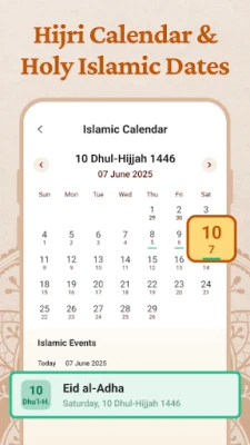 Endelea kufuatilia matukio muhimu ya Kiislamu kwa urahisi kupitia kalenda yetu ya Hijri. Angalia na badilisha kati ya tarehe za Hijri na Gregori bila shida, na hata rekebisha tarehe za Hijri kulingana na muandamo wa mwezi wa eneo lako. Zaidi ya hayo, Salati inakusaidia kupata misikiti iliyo karibu kwa sala za jamaa na matukio ya jamii, na pia kugundua migahawa iliyothibitishwa kuwa Halal popote unaposafiri. Ili kufurahia Salati kikamilifu, wezesha eneo la kiotomatiki kwa usahihi wa muda wa sala na uhakikishe programu inasasishwa mara kwa mara kwa hesabu bora zaidi. Salati imejitolea kukupa uzoefu wa Kiislamu ulio kamilifu, wa kuaminika na unaokidhi mahitaji yako yote ya kidini.