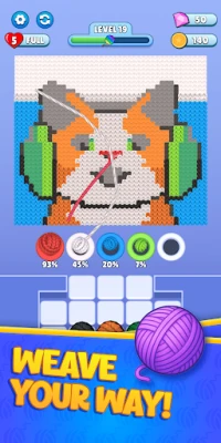 Zaidi ya hayo, jitayarishe kwa changamoto zenye akili zinazohitaji mchanganyiko kamili wa mantiki, upangaji makini, na ubunifu. Hutawahi kukosa mafumbo mapya, kwani viwango vipya vilivyotengenezwa kwa mikono huongezwa kila siku ili kukuweka msisimko na kuhamasika. Binafsisha safari yako kwa kufungua mitindo ya kipekee ya nyuzi, mipangilio mipya, na mandhari tofauti, ukibadilisha uzoefu wako jinsi upendavyo. Huu ni zaidi ya mchezo wa mafumbo—ni muda wako wa utulivu katikati ya siku yenye shughuli nyingi. Iwe unacheza kutuliza akili, kuchangamsha ubongo, au kufurahia tu uradhi wa kuunganisha nyuzi, mchezo huu unakupa uzoefu wa kupendeza na wa kutafakari utakaoendelea kuutafuta tena na tena. Acha rangi zikuongoze, miundo ikutie moyo, na vidole vyako vifanye kazi ya kusuka.