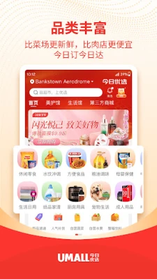 Umall今日优选 huwapa wateja urahisi wa maduka makubwa, pamoja na mazao mapya ya hali ya juu, matunda na mboga. Furahia huduma ya usafirishaji wa bidhaa mbalimbali moja kwa moja hadi nyumbani kwako, kwa urahisi usio na kifani.