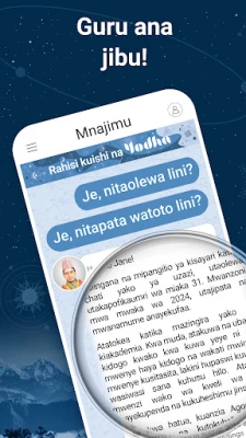 Kupata mwongozo sahihi ni rahisi sana na Yodha. Anzisha kwa kuunda wasifu wako wa kuzaliwa, kisha uliza swali lolote linalokutatiza akili yako. Wanajimu wetu wenye uzoefu watachunguza chati yako ya kuzaliwa ya natali kwa makini ili kukuletea utabiri kamili, uliopachikwa hekima ya vizazi. Iwe unatafuta upendo na ndoa, unashangaa kuhusu hatima ya uhusiano wako wa sasa, au unatamani kujua utangamano na mpendwa wako, Yodha hukupa majibu ya kutegemewa. Hata kama unatafuta kusudi lako la kweli maishani au unataka kuelewa zaidi kuhusu kile kinachokungoja kila siku, wanajimu wetu wako tayari kukupa ufafanuzi unaohitaji.