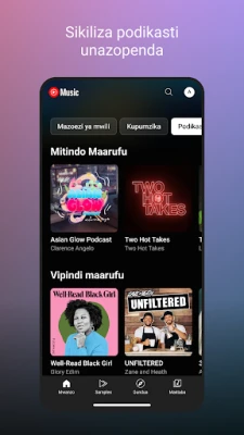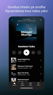 YouTube Music inakupa nafasi ya kubinafsisha kila tukio la usikilizaji. Gundua miseto na orodha za kucheza zilizoundwa mahususi kwa ajili yako, zikibuniwa kulingana na ladha yako ya kipekee ya muziki. Iwe ni kwa ajili ya vipindi vyako vya mazoezi, nyakati za utulivu na kutafakari, au hata kuweka hali ya kupumzika, utapata mdundo unaofaa. Unaweza pia kuunda orodha zako za kucheza ukitumia mapendekezo mahiri ya nyimbo, au ushirikiane na wapenzi wengine wa muziki ili kubuni mkusanyiko kamili. Maktaba yako Iliyobinafsishwa inakuhakikishia kufikia haraka nyimbo, video, wasanii na albamu zote unazopenda na ulizohifadhi.
